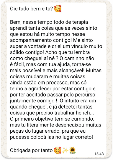 Não tem problema. Muitas pessoas chegam com dúvidas, angústias ou apenas sentindo que “algo não vai bem”. Juntas, vamos compreendendo os sinais e construindo caminhos possíveis.